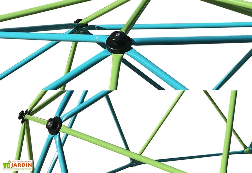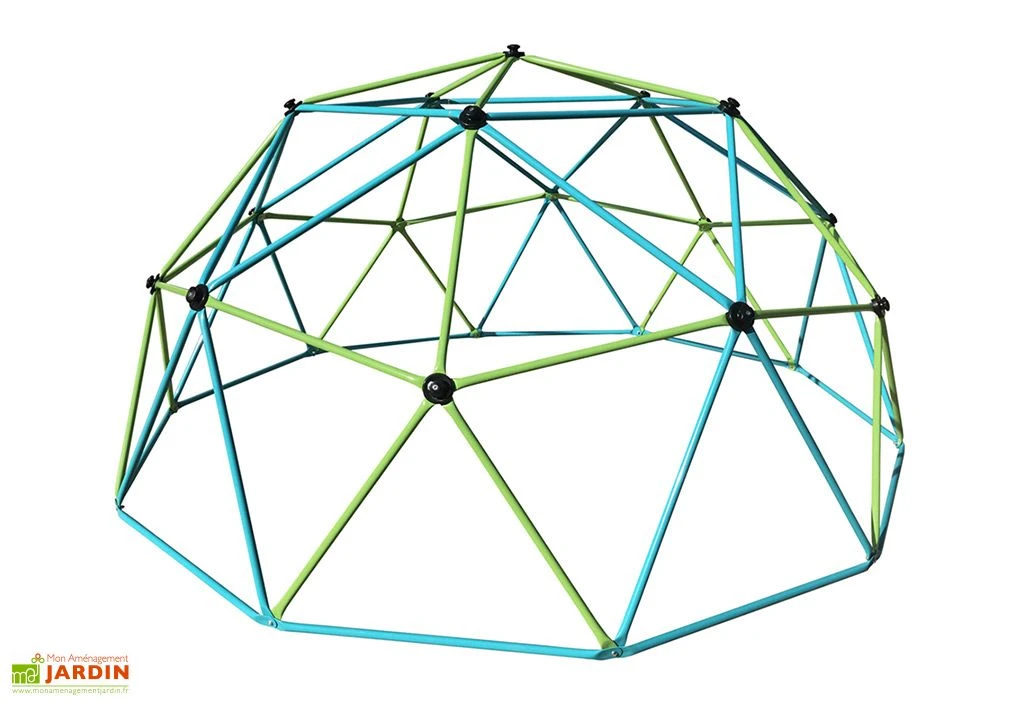 Très coloré, le dôme de jeu est vert et bleu. Les enfants pourront s’amuser à escalader durant de nombreuses heures seuls ou avec leurs amis.