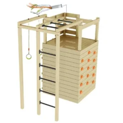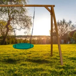 L’aire de jeux Gaia est conçue à partir de pin sylvestre certifié FSC. Le bois utilisé provient donc de forêts gérées de manière durable et responsable. Il est également traité par autoclave de classe 3, ce qui le protège de l’humidité, des insectes et des champignons qui pourraient détériorer la structure.