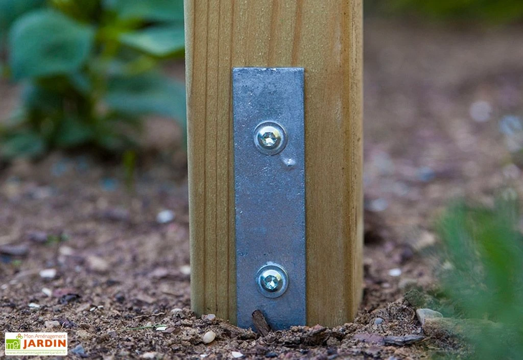 La visserie en inox, mais également les crochets pour balançoires, un ensemble d’outils et le kit d’ancrage, sont inclus. Pour des raisons de sécurité, il est recommandé de prévoir un périmètre de sécurité de 2 m tout autour de l’aire. Pensez-y avant de procéder au montage.