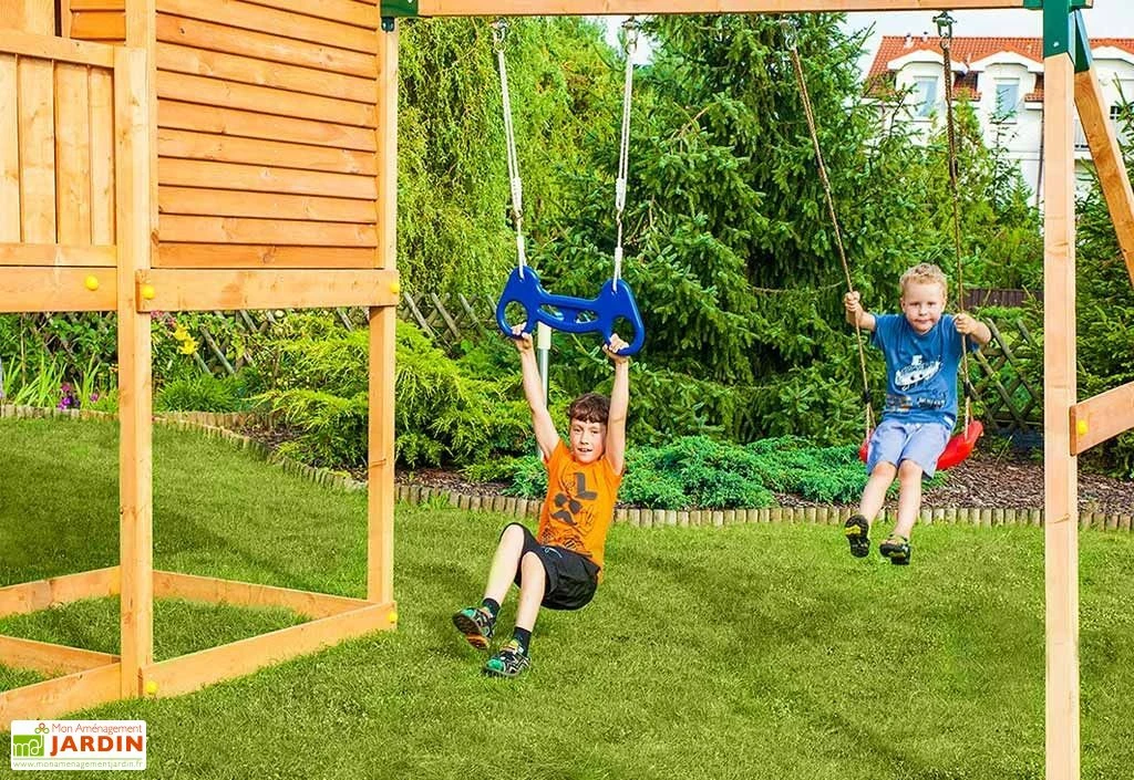 L’aire de jeux respecte les normes de sécurité EN71 et dispose d’une garantie de 2 ans.