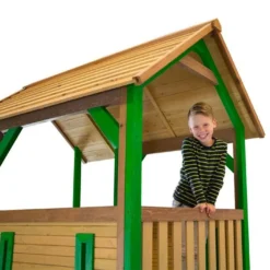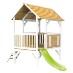 Cette tour de jeu est fabriquée en bois de Hemlock et possède une toiture faite de cyprès. Ces bois, résistants aux intempéries et naturellement imputrescibles, ne craindront ni les insectes, ni les champignons et autres agressions extérieures. Ils n’ont subi aucun traitement chimique, ce qui est plus écologique et plus sain pour vos enfants, et sont certifiés 100% FSC, ce qui signifie qu’ils proviennent de forêts gérées dans le respect de l’environnement.