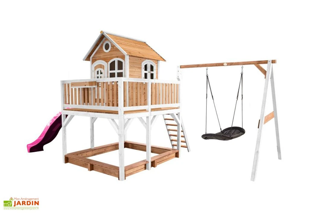 L’aire de jeux Liam de chez Axi est entièrement fabriquée en bois. Elle associe le Hemlock au cyprès, des essences naturellement imputrescibles qui ne craignent ni les insectes, ni l’humidité ou la moisissure qui pourraient endommager le bois. L’ensemble n’a alors nécessité aucun traitement chimique et ne vous demandera aucun entretien. Le bois utilisé est par ailleurs certifié FSC, et provient donc de forêts gérées de manière écoresponsable.