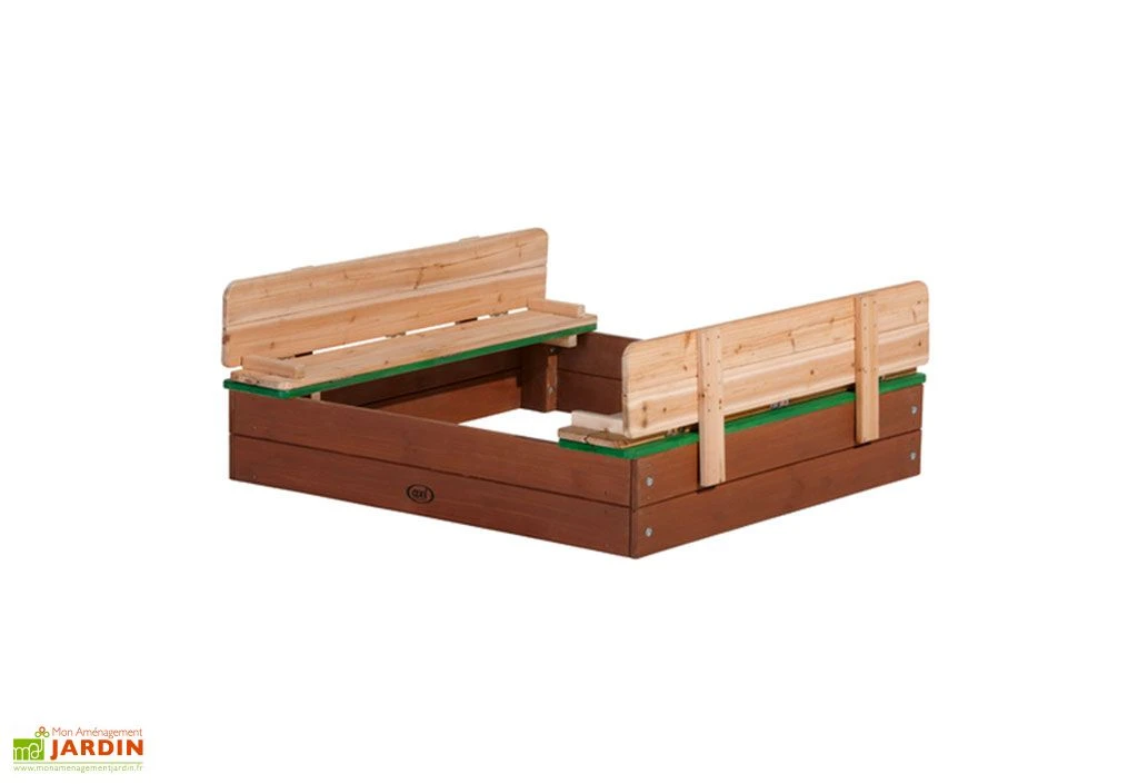 Le bac à sable Ella de chez Axi est équipé de petits bancs rétractables permettant non seulement aux enfants de s’asseoir pour jouer, mais qui feront également office de couvercle une fois le jeu terminé. L’ensemble est fabriqué en bois de Hemlock, une essence naturellement imputrescible et donc insensible à l’humidité, aux champignons ou autres insectes susceptibles de détériorer le bois.