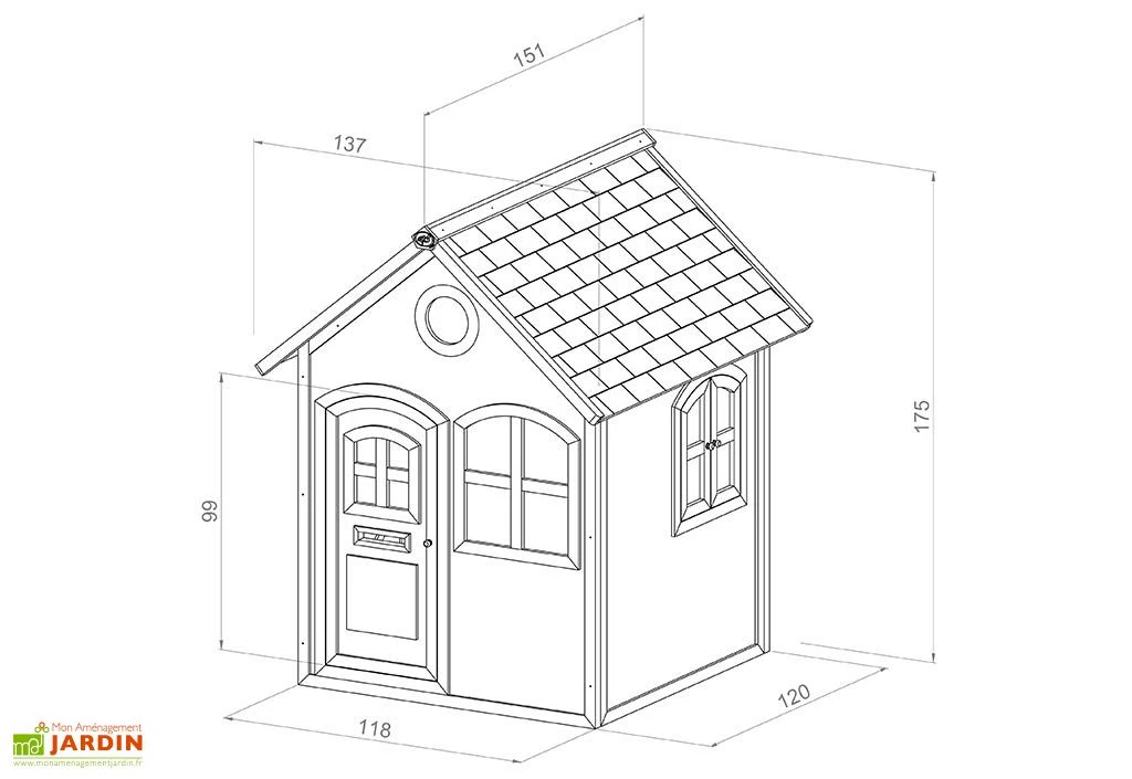 La maisonette pour enfant est livrée en kit avec sa visserie, le temps de montage est estimé à 1 h. L’âge minimum conseillé est de 1 an et demi.