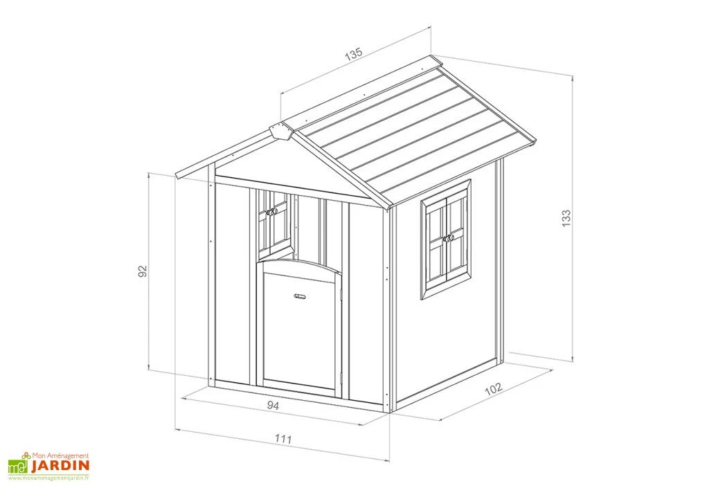 La cabane en bois Lodge de chez Axi s’adresse aux enfants Ă partir de 2 ans. Elle mesure 135 cm de long sur 111 cm de large, pour 133 cm de haut. Ses dimensions intĂ©rieures sont de 97 cm (profondeur), 89 cm (largeur) et 128 cm (hauteur).Â