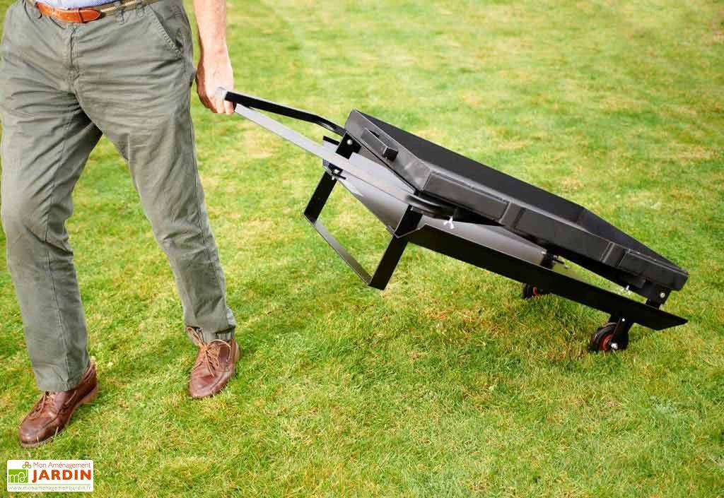 Pour un déplacement et un rangement plus aisés, le barbecue est équipé de 2 roues et d’une poignée. La grille, équipée de deux poignées amovibles, est réalisée en fils de 4 et 8 mm.