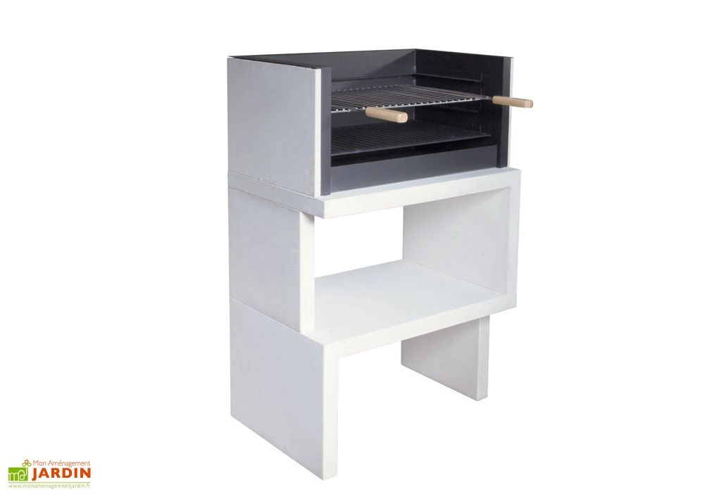 Ce barbecue en béton est doté d’un foyer équipé d’une plaque métallique recouverte d’une peinture thermorésistante. Il est livré accompagné d’une grille de cuisson en acier inoxydable et dispose d’un bac à cendres permettant de simplifier la collecte et le vidage des cendres. Un tiroir est disponible en option afin que vous puissiez profiter d’un espace de rangement pour le charbon de bois ou pour vos ustensiles de cuisine.