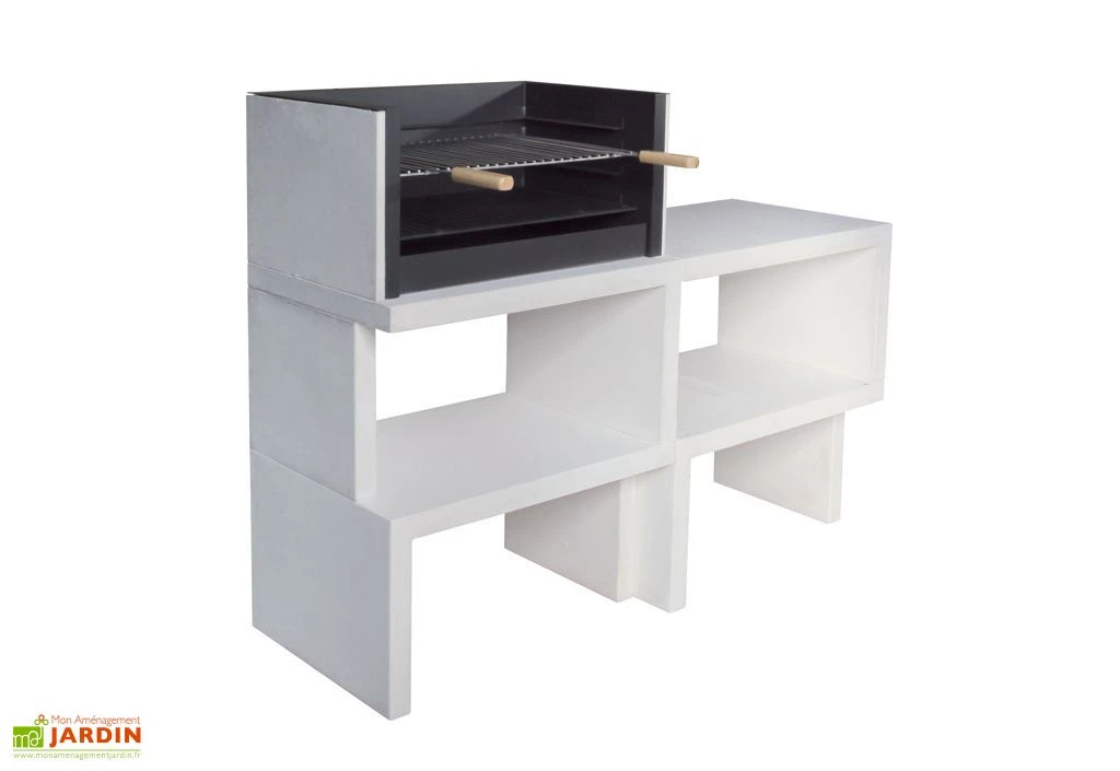 Ce barbecue Blive profite d’un design modulaire à la fois moderne et élégant. Il est fabriqué en béton fibré et en béton brut, le tout étant hydrofuge afin d’éviter que les eaux pluviales ne viennent détériorer le barbecue ou que d’éventuelles infiltrations ne soient la cause de fissures. Il mesure 155 cm de large sur 52 cm de profondeur et est composé de différents modules à assembler vous-même.