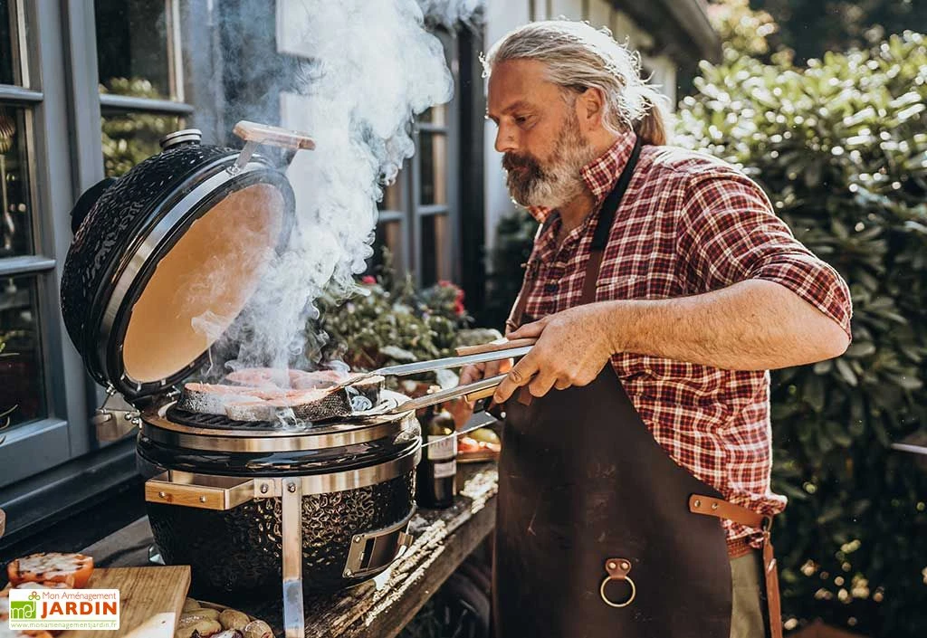 Le barbecue kamado Monolith Icon de chez Fargau est à la fois performant et polyvalent tout en étant plutôt compact, ce qui est idéal pour les terrasses, balcons et autres petits extérieurs. Doté d’une cuve en céramique et équipé d’un couvercle avec thermomètre, ce type de barbecue permet de cuire divers types d’aliments avec précision, de la viande à la pizza en passant par les légumes.