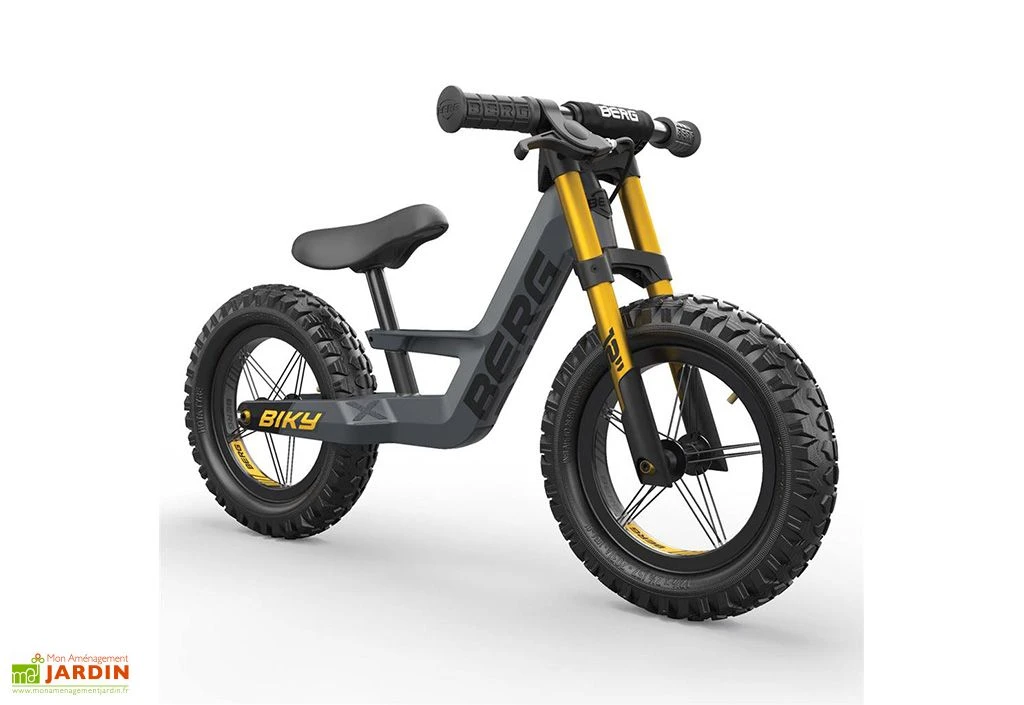 La draisienne de la gamme Biky City de chez Berg est équipée d’un frein situé sur le guidon, permettant à votre enfant de s’arrêter en douceur sans l’aide de ses pieds. Elle dispose également d’un système pour restreindre la direction du guidon assurant une sécurité à vos bambins lorsqu’ils braquent trop fort.
