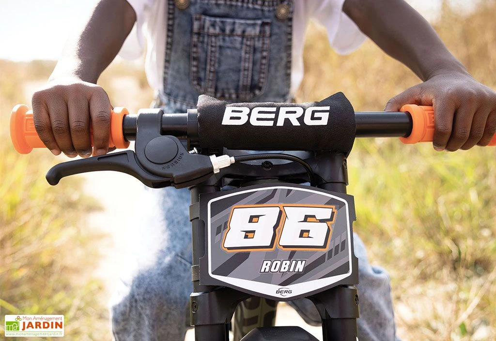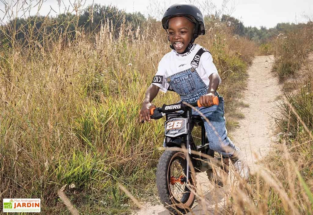 La draisienne pour enfants garantit un grand confort à votre bambin lors de vos balades. En effet, elle possède des poignées oranges adhérentes ainsi qu’un coussin d’appui sur le guidon. Il est possible de personnaliser la draisienne en indiquant un numéro de course et un nom sur la plaque située à l’avant du vélo. Enfin, la draisienne tout-terrain bénéficie d’un frein à main facile à serrer pour garantir un maximum de sécurité.