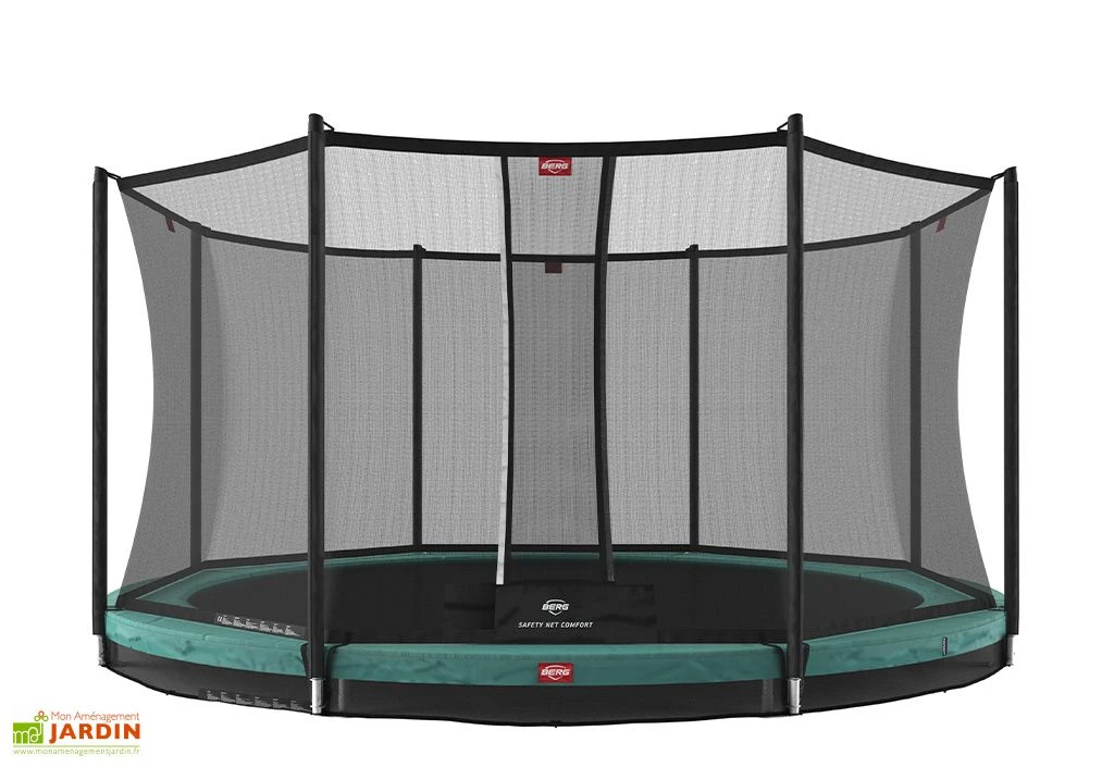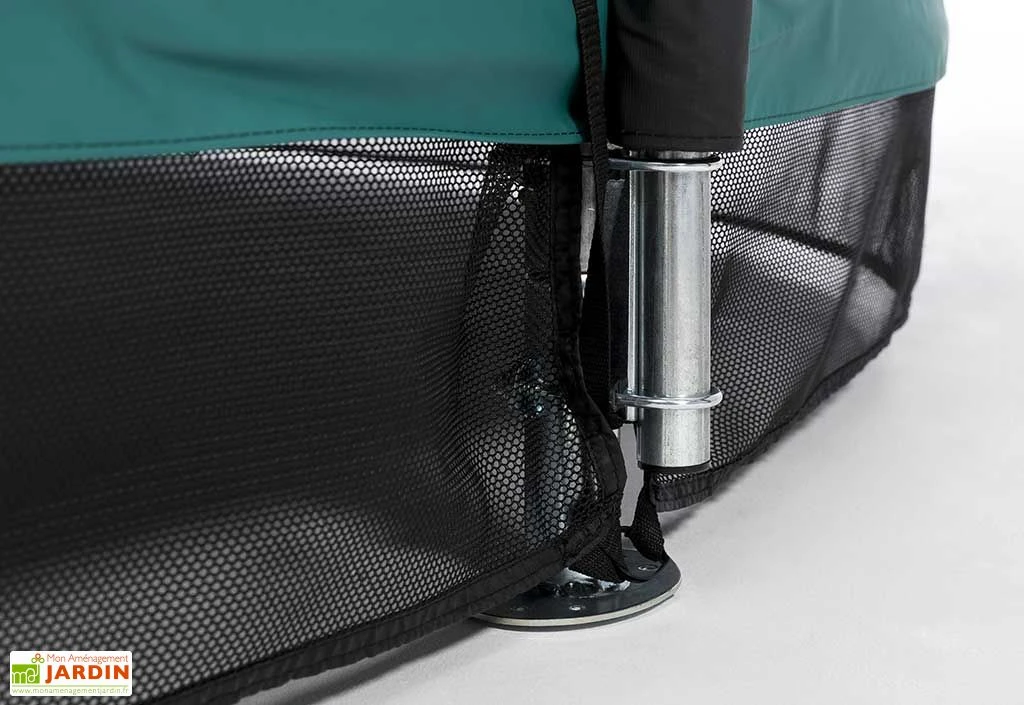 Le trampoline enterré de la gamme Favorit est pensé pour s’intégrer facilement dans votre jardin. Il est en effet plus discret qu’un trampoline sur pieds en plus d’être plus sûr, car il est installé au niveau du sol. Destiné aux enfants âgés d’au moins 6 ans, il est équipé d’un filet de sécurité chargé d’éviter tout risque de chute.