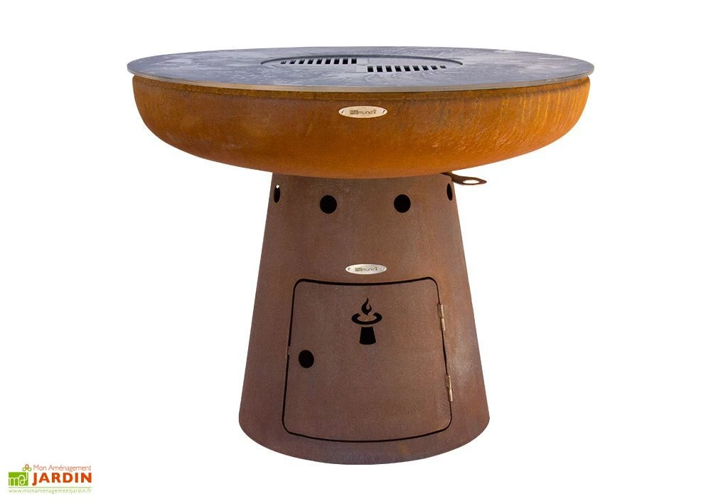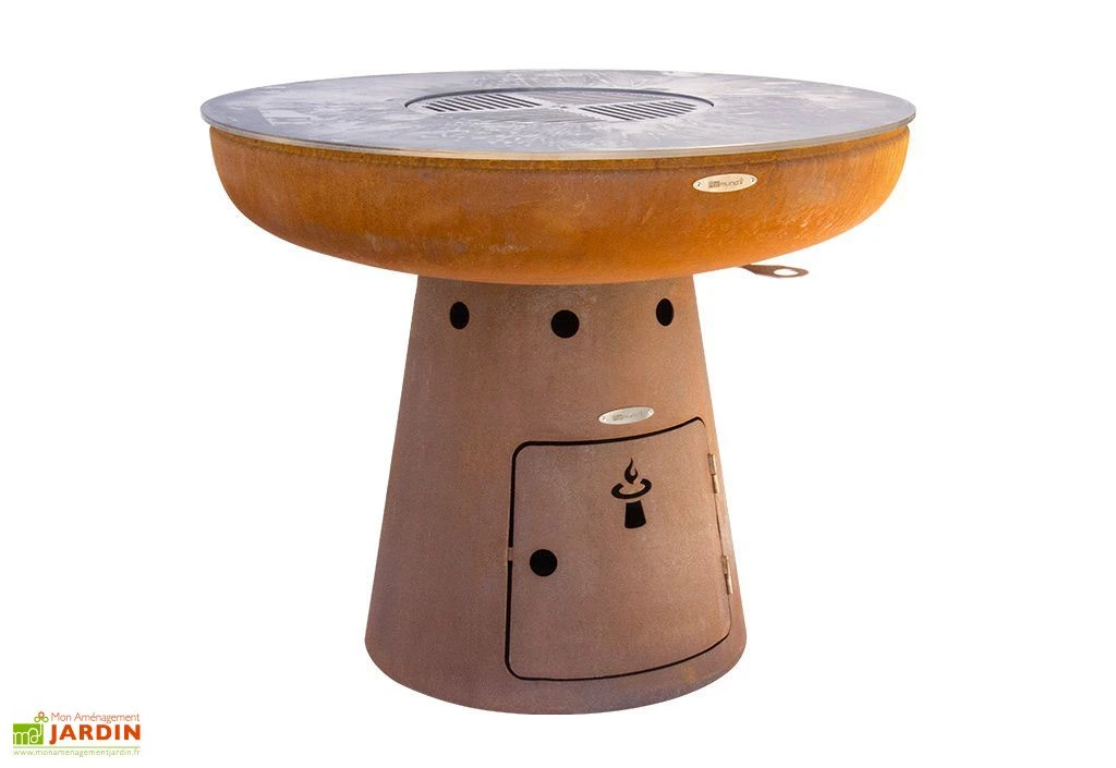 Le braséro de jardin est à la fois un chauffage extérieur et un véritable barbecue. Il vous permet de profiter de la chaleur d’un bon feu de bois pendant les soirées fraiches de la fin du printemps ou du début de l’automne et ainsi de faire durer la saison. Sa grande table de cuisson vous permet également de faire griller viandes et légumes façon plancha.