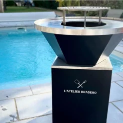 Ce grand brasero de jardin à la fois design et épuré dispose d’un diamètre de 85 cm ainsi que d’une hauteur de 100 cm et s’intégrera parfaitement dans votre extérieur. Ce grand brasero possède un foyer circulaire de 45 cm de diamètre situé au centre et qui permet de faire cuire toute sorte d’aliments comme des légumes, viandes ou poissons. Une grille de cuisson supérieure est disposée au niveau du foyer de ce brasero.
