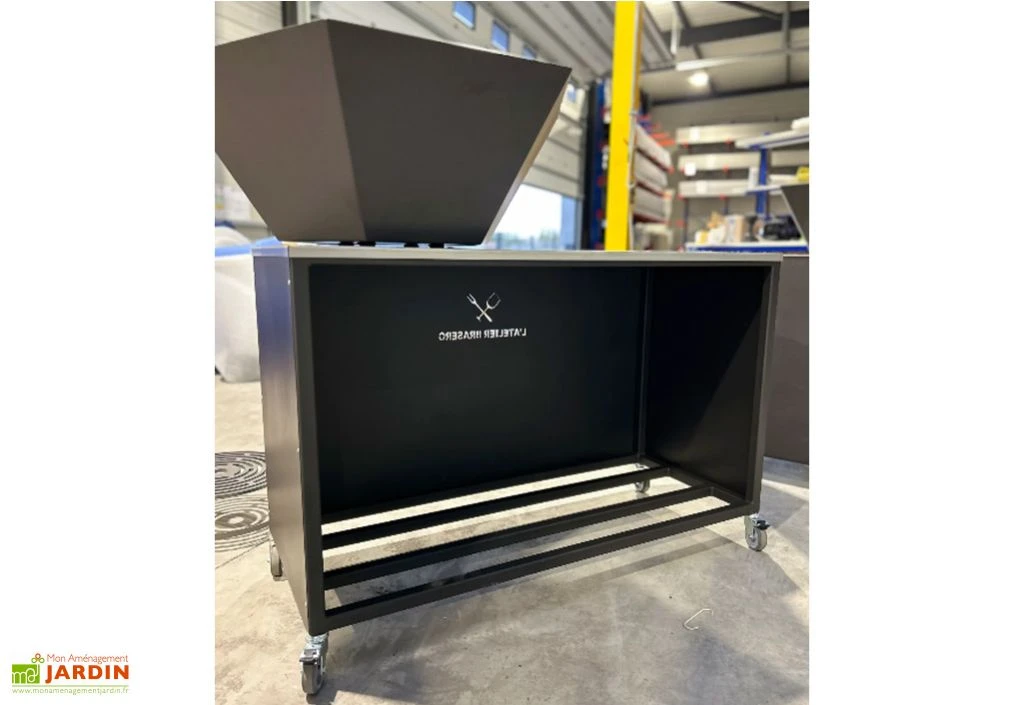 Ce brasero haut de gamme a pour particularité d’être monté sur roulettes, il sera facile de le déplacer si besoin. Ce brasero fonctionne au bois ou au charbon et un range-bûches est également intégré afin d’avoir votre combustible à proximité.