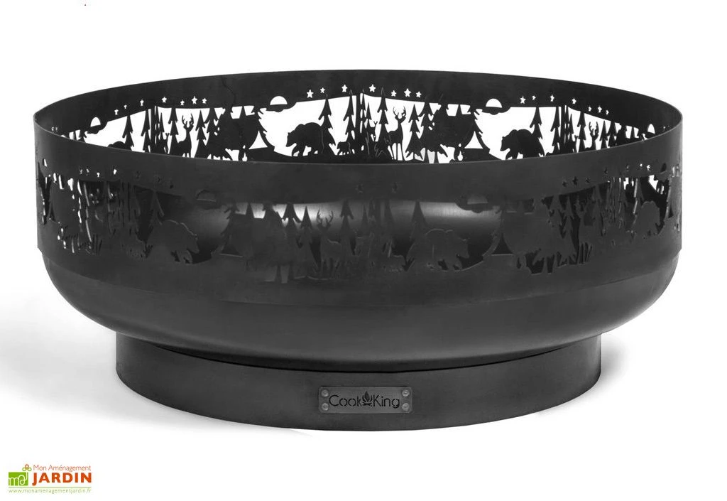 Le braséro Forest de Cookking est fabriqué à la main, en acier brut. Il mesure 80 cm de diamètre et 33 cm de hauteur et possède une jolie frise illustrant parfaitement la forêt de l’Amérique du Nord. La frise a été réalisée à l’aide d’un laser à commande numérique, permettant de belles finitions et des détails précis.