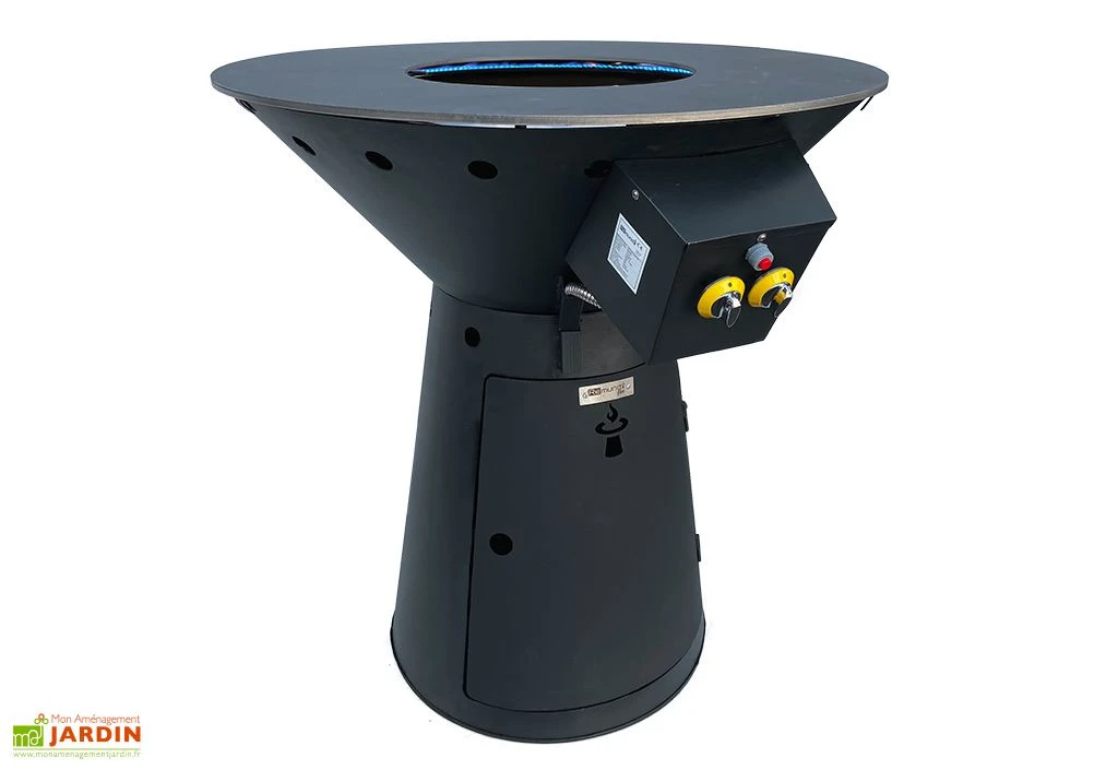 Disponible dans deux tailles au choix, le brasero plancha Phoenix de chez Remundi fonctionne au gaz, ce qui lui permet de profiter d’une belle flamme, régulière, le tout sans que vous n’ayez à utiliser, et donc à stocker, de bois. Sa plaque de cuisson de 79 ou 99 cm de diamètre, selon la version choisie, est complétée par une grille de cuisson de 34 ou 45 cm de diamètre, vous permettant ainsi de faire griller viandes, légumes et poissons le temps d’un moment de convivialité en extérieur.