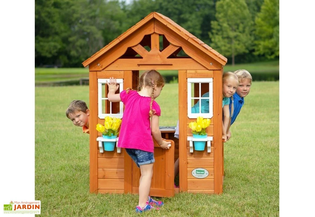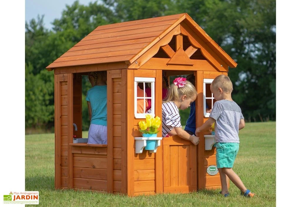 La cabane en bois Timberlake de Backyard Discovery est en cèdre tropical idéal pour les enfants puisqu’il ne nécessite aucun traitement chimique. Il résiste naturellement aux insectes et à la moisissure.