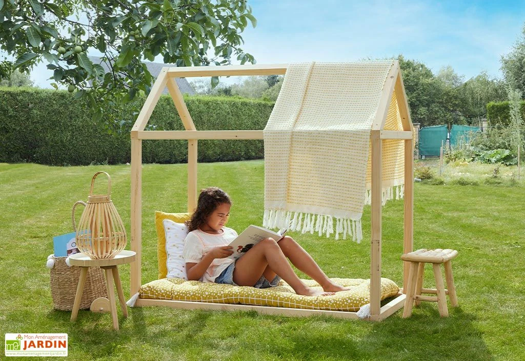 Cette cabane en bois, inspirée de la pédagogie Montessori est présentée par Soulet comme le jeu de jardin idéal pour développer l’autonomie et encourager la liberté de l’enfant ! En effet, en étant dénuée de paroi et de barreau, elle encourage l’enfant à développer son propre univers. A lui de peindre les montants, de la couvrir de tissus ou d’y ajouter un matelas. Tout est possible !