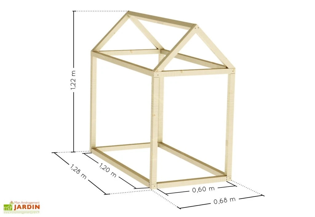 Petite astuce : Un matelas de 60 x 120 cm peut être glissé au sol de la petite maison !