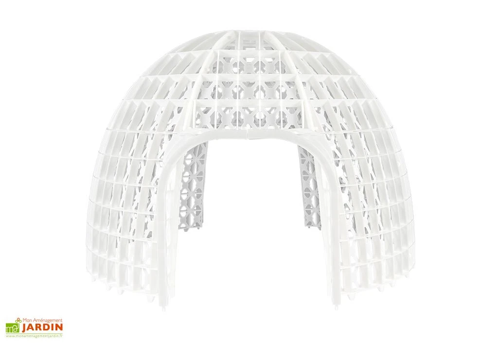 L’igloo est une cabane constituée de 20 pièces aussi résistantes qu’elles seront faciles à assembler. Une notice détaillée et claire est fournie et en 10 minutes seulement l’igloo sera opérationnel. La structure mesure 105 cm de hauteur et 153 cm de diamètre au sol. 2 portes permettent d’entrer et de sortir de l’igloo.