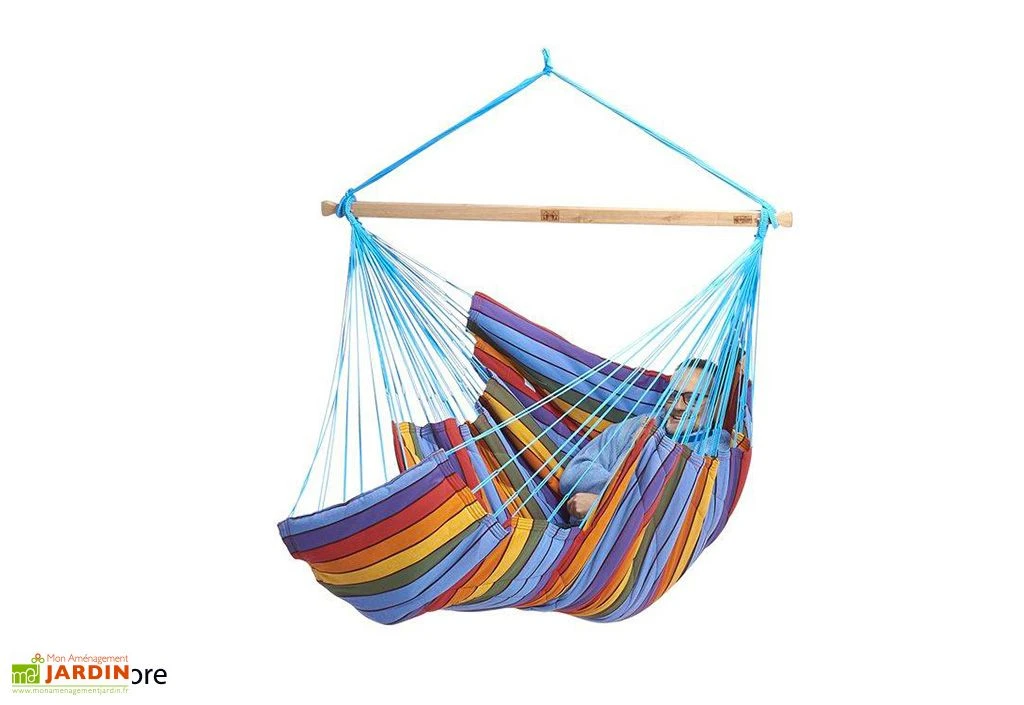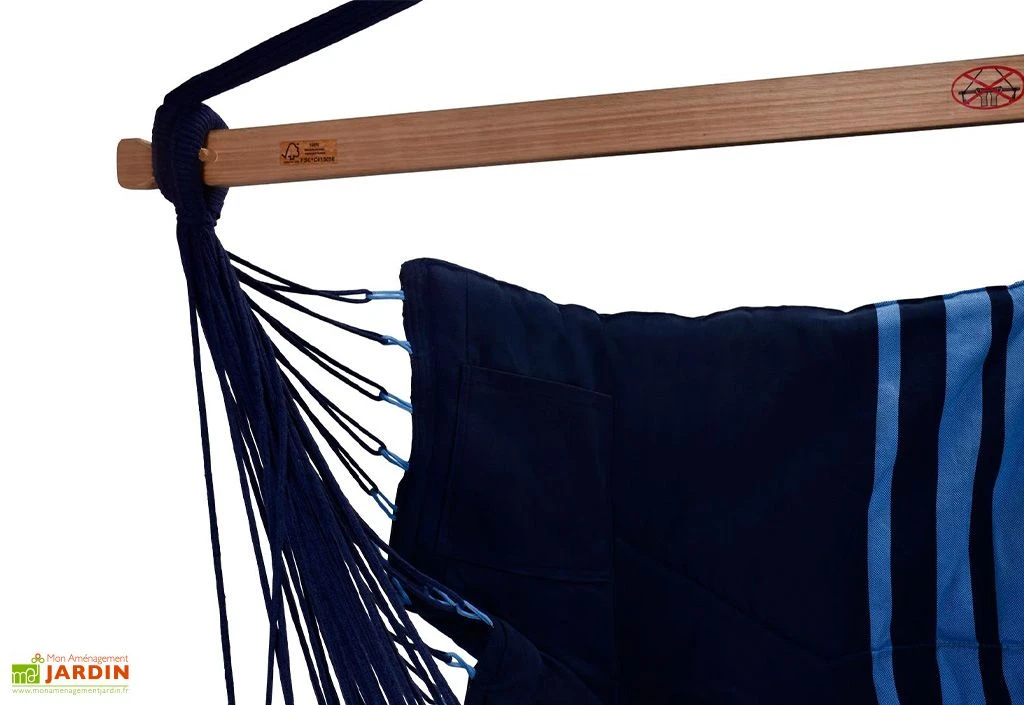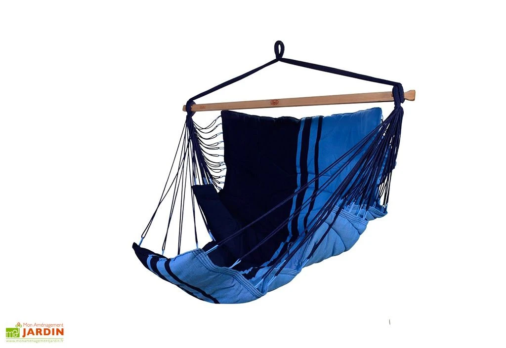 Tout droit venue du Brésil, la chaise-hamac vous offre une toile dont la qualité de tissage est sans précédent. Elle est entièrement molletonnée sur ses 130 x 225 cm de dimensions. Cela vous promet un confort d’assise de qualité supérieure, afin que vous vous sentiez dans cette balancelle comme dans un nuage.