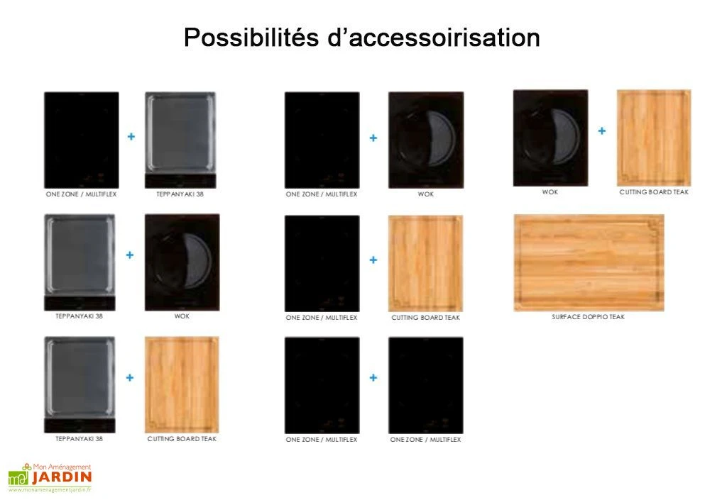Pour compléter votre cuisine d’extérieur, il est nécessaire de choisir des plaques de cuisson ou des accessoires. Attention, si vous ne choisissez pas d’accessoires ni plaques de cuisson, le chariot sera livré seul.