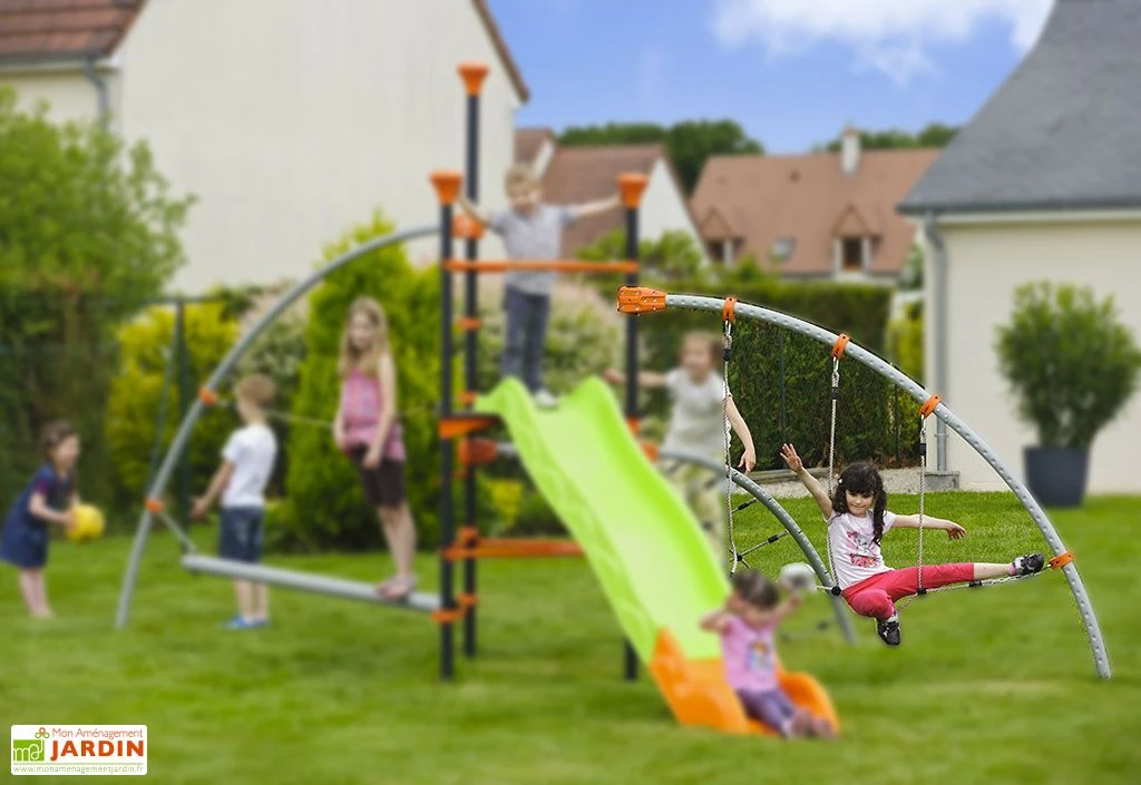 L’agrès s’installe facilement en 2 minutes sur les aires de jeux EVO, grâce à un système innovant et breveté. Les agrès sont interchangeables autant que vous le souhaitez pour suivre l’évolution et les désirs de l’enfant. L’agrès est fabriqué en France. La garantie est de 2 ans.