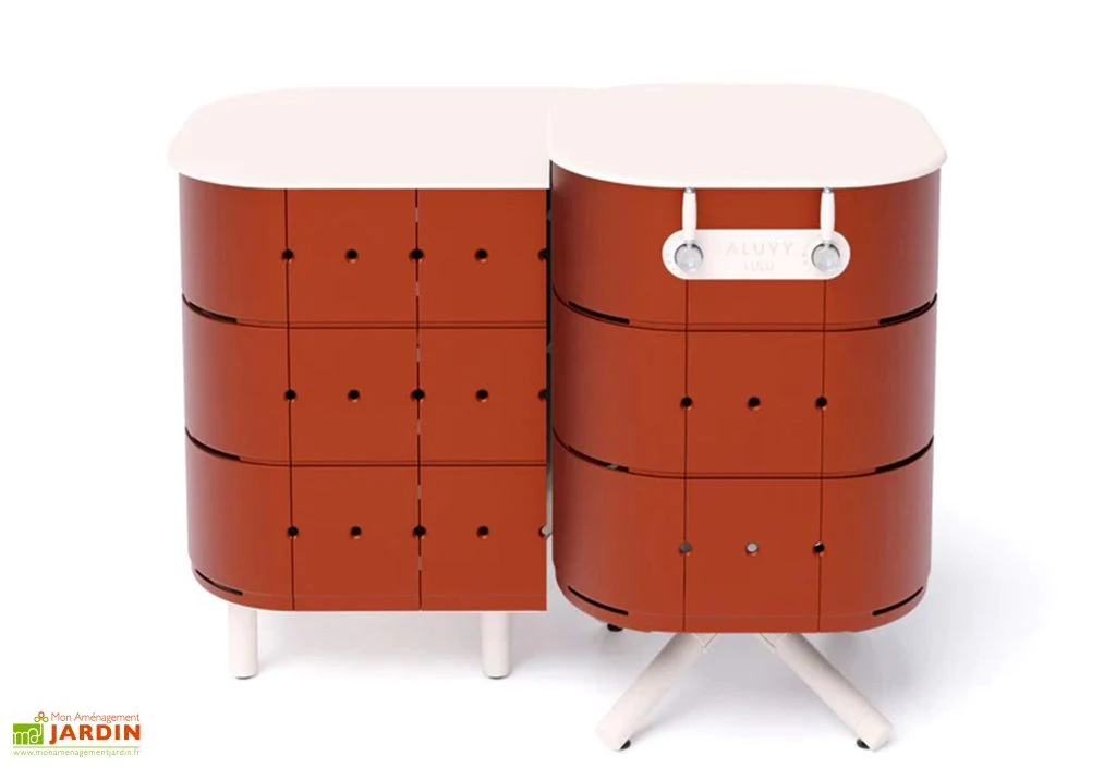 Le meuble Jean est facile à installer et se pose simplement contre votre barbecue au charbon de bois ou votre barbecue au gaz de la marque Aluvy. Il affiche des dimensions de 84 cm de longueur sur 64 cm de largeur pour 89 cm de hauteur. Le matériau en aluminium confère une grande légèreté au meuble de cuisine extérieure, ce qui facilite son déplacement et sa manipulation. Plus besoin de faire des allers-retours dans la cuisine !
