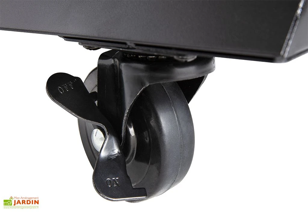 L’accessoire pour barbecue offre un espace de travail supplémentaire pour préparer et cuisiner vos aliments avant de les mettre sur la plaque de cuisson. Juste en dessous, vous disposez de deux compartiments afin d’y entreposer vos ustensiles et vos assaisonnements. Des roues avec freins sont intégrées à la desserte de 16,80 kg afin de pouvoir la déplacer facilement sans aucun effort.