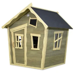 La maisonnette pour enfant Crooky 100 de chez Exit Toys est entièrement fabriquée en cèdre séché. Cette essence possède l’avantage d’être naturellement résistante à l’humidité. Aucun traitement chimique n’est donc ajouté et les parois de la cabane sont peintes avec une lasure en phase aqueuse. Notez que le bois utilisé est certifié FSC. Il provient donc de forêts gérées de manière écologique.