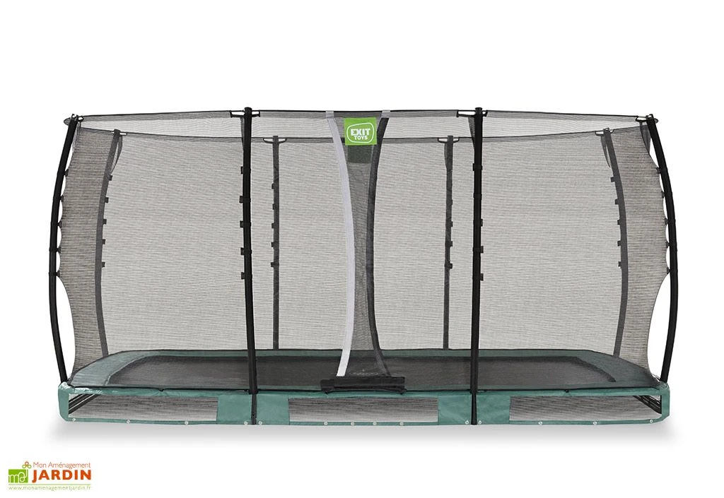Afin de le tenir bien en forme, le filet de protection est également maintenu par des anneaux en fibre de verre. Ce filet dispose d’une entrée chevauchante qui se ferme automatiquement après chaque passage pour que celle-ci ne reste pas ouverte de façon inopinée. Vos enfants pourront donc jouer avec leurs amis en toute tranquillité sur ce trampoline rectangulaire enterré durant les belles journées ensoleillées dans votre grand jardin.
