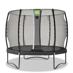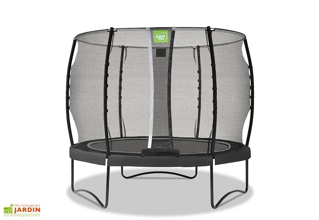 Le trampoline de la gamme Allure Classic de chez Exit Toys dispose d’un cadre noir en métal galvanisé et thermolaqué doté de trois pieds en forme de W. Ce type de matériau va permettre à votre trampoline de bénéficier d’une longue durée de vie, mais il est tout de même conseillé de le rentrer en période hivernale. Le trampoline rond est équipé d’un tapis de saut noir en polypropylène de 254 cm de diamètre cerclé par 66 ressorts doubles coniques.