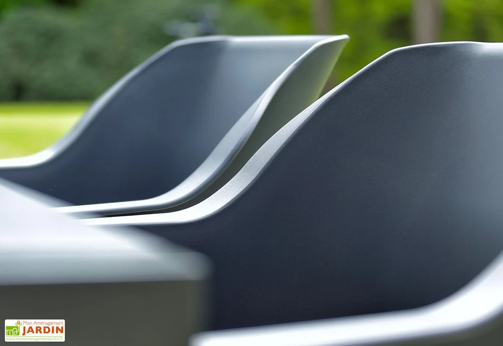 Le fauteuil de jardin Sophie Element de chez Hartman est disponible dans quatre coloris au choix : blanc, noir, gris ou jaune. Livrés par paire, ces fauteuils se composent d’un piètement en aluminium et d’une assise en résine. Ces matériaux, parfaits pour l’extérieur, résistent très bien aux intempéries et sont insensibles à la corrosion, le tout sans nécessiter d’entretien particulier.