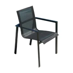 Le fauteuil de chez DCB Garden a une armature en aluminium et une assise en textilène noir. Le fauteuil mesure 58 x 58 x 84 cm (l,l,h). La hauteur de l’assise est de 43 cm. La garantie est de 2 ans.