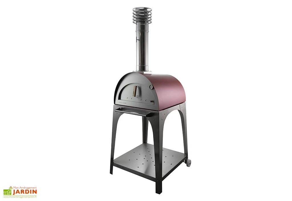 Le four à pizza d’extérieur Perla de chez Fargau mesure 66 cm de large sur 68 cm de profondeur. Il est livré accompagné d’un chariot à roulettes permettant non seulement de le rehausser, mais également de le déplacer facilement. Vous pourrez ainsi profiter d’une installation stable et parfaitement sûre pour cuisiner vos viandes, poissons ou pizzas. Notez que ce four à bois et disponible dans deux coloris au choix : gris anthracite ou rouge.