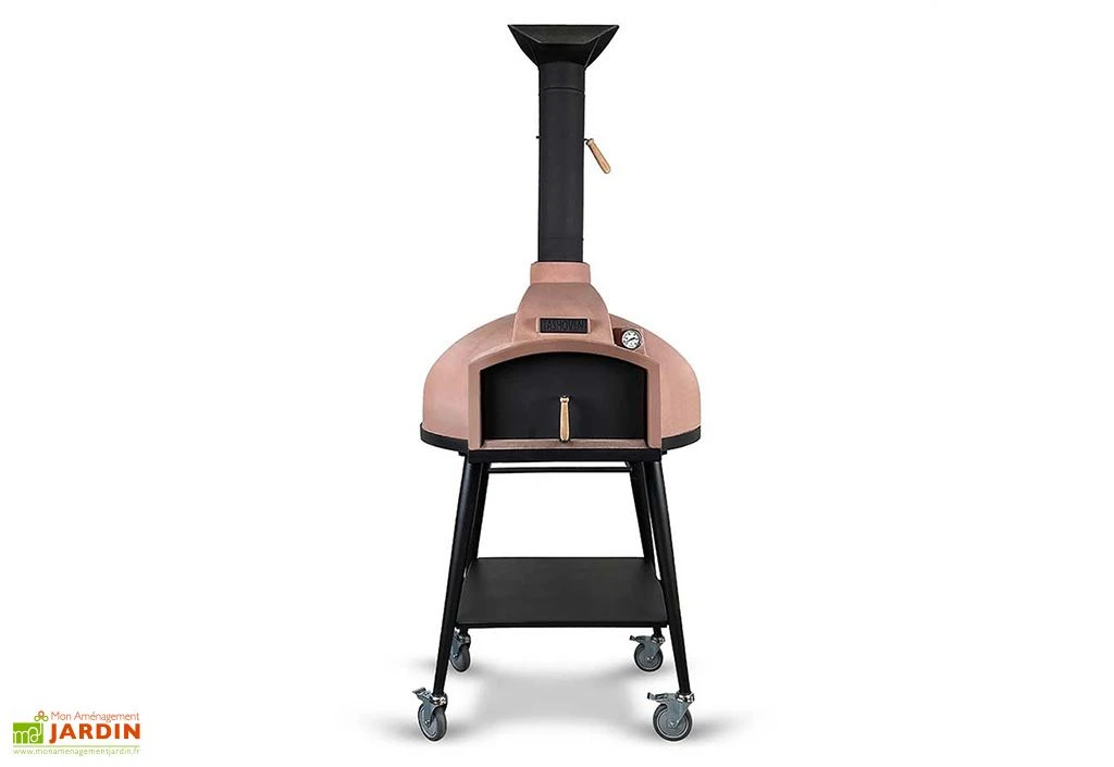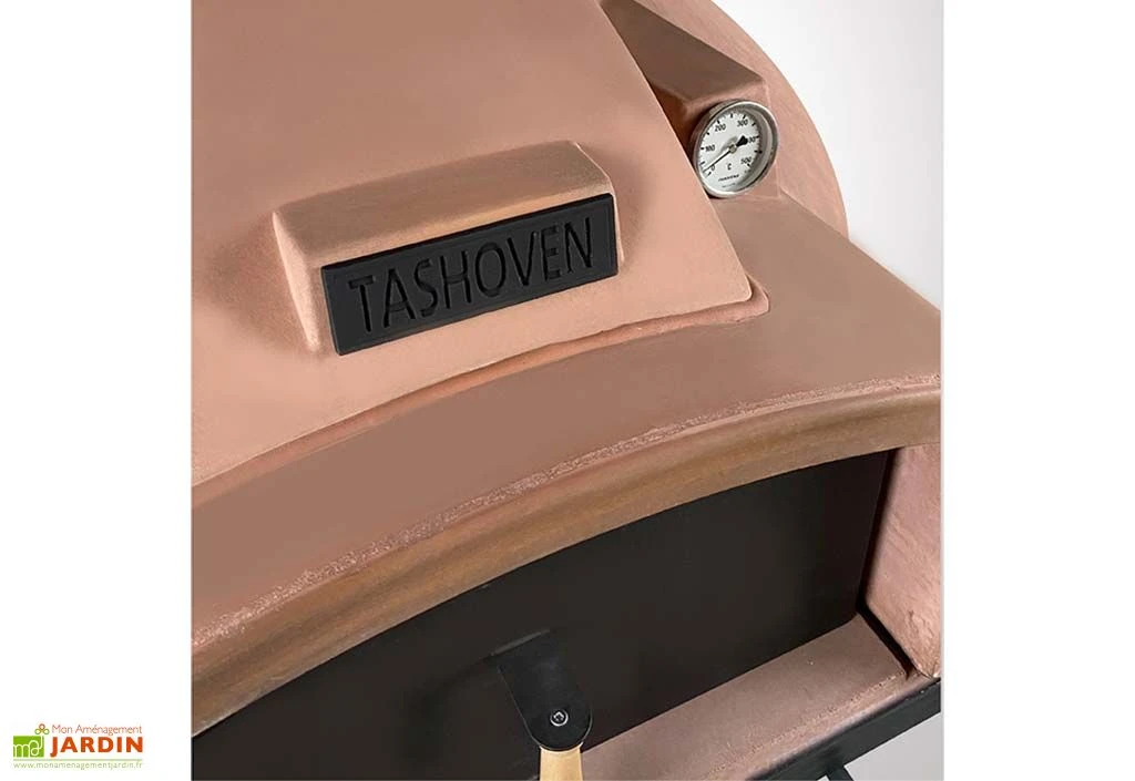 Ce four de jardin s’est vu doté d’une triple couche d’isolation et d’une sole réfractaire de 3 mm d’épaisseur chargée d’assurer une bonne restitution de la chaleur produite. La plus grande version intègre même un thermomètre qui vous permettra d’avoir toujours un œil sur la température intérieure du four afin de maîtriser vos cuissons à la perfection. L’allumage du four prendra entre 45 et 60 minutes avant d’atteindre la température maximale, selon la taille choisie et les conditions climatiques. Notez que la montée en température devra se faire de manière progressive.