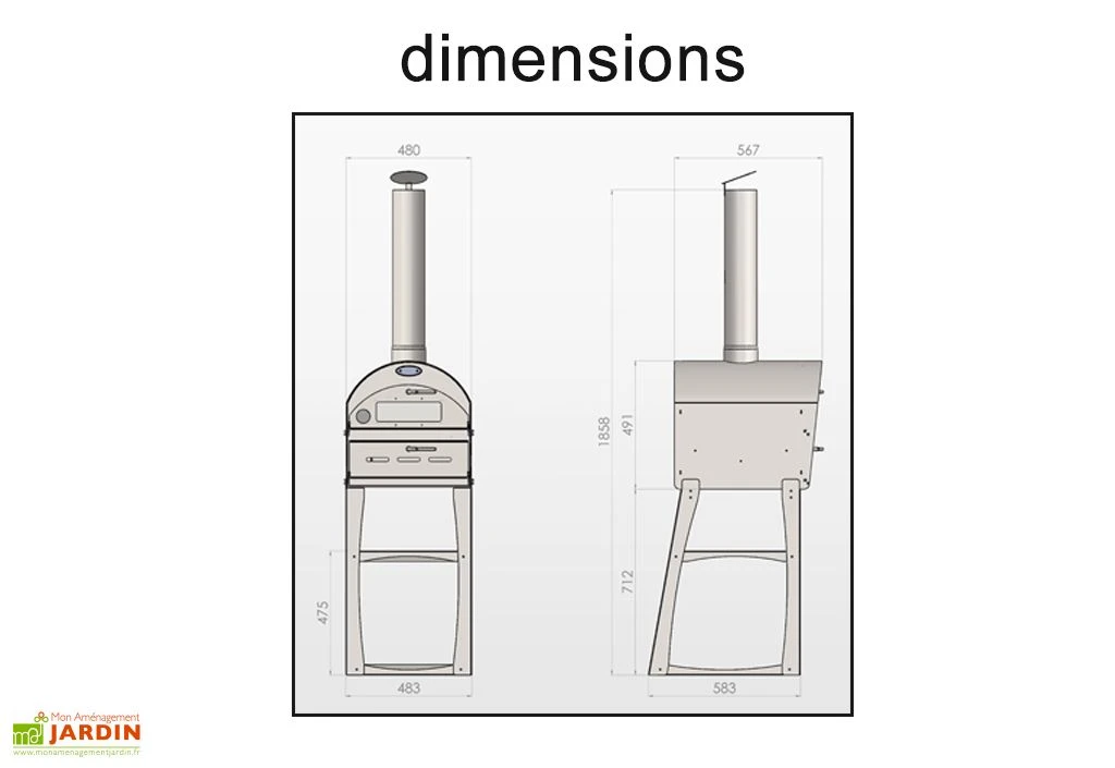 Le four à pizza extérieur fonctionne au bois. Il dispose d’une pierre réfractaire de 4 cm d’épaisseur et d’un foyer de 46 x 39 cm. Une ouverture permet de laisser passer les flammes afin de disposer d’une cuisson au feu de bois idéale pour les pizzas et tartes flambées. 20 minutes seulement sont nécessaires pour la mise en température du four.