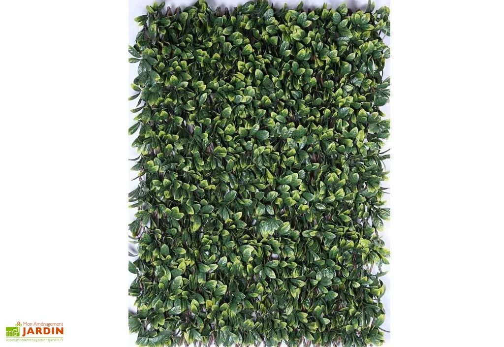 La haie de couleur verte et jaune est traitée anti-feu et anti-UV 9000 heures.