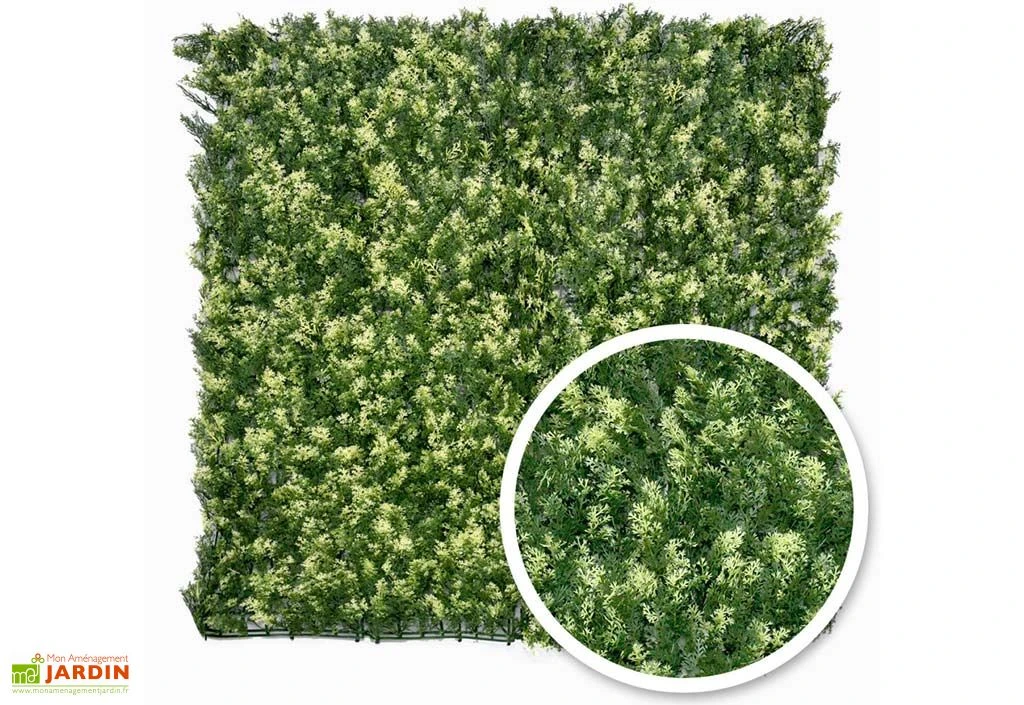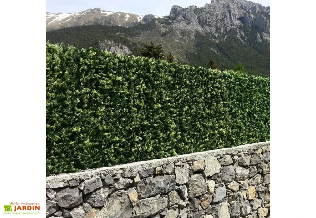 Ce feuillage artificiel pourra être placé sur n’importe quel support rigide tel qu’un muret ou un grillage. Il vous permettra ainsi de profiter de plus d’intimité grâce à son occultation de 90 %. Ce feuillage pourra également être placé en intérieur pour créer un de ces beaux murs végétaux très en vogue ces dernières années. Vous pouvez utiliser les colliers de serrage (non inclus) disponibles dans la rubrique « Accessoires », pour fixer plus solidement votre feuillage. Ils doivent impérativement être commandés en même temps qu’un brise-vue de chez France Green.