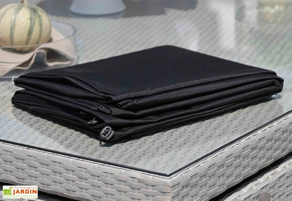 Votre housse de protection de chez DCB est en polyester imperméable. Elle garantit la protection de votre table de jardin pour salon encastrable de chez DCB 8 personnes. Ses dimensions sont de 210 x 105 cm. Elle est garantie 2 ans.
