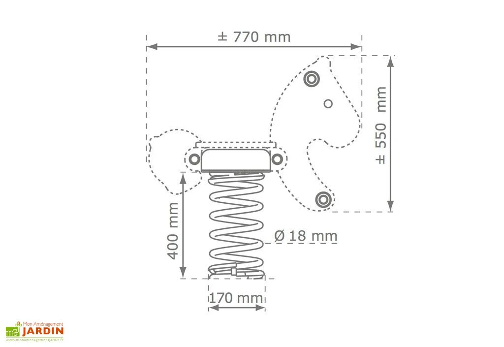 Votre jeu sur ressort Avion de chez KBT est conforme à la norme TUV, ce qui lui permet d’être utilisé dans les lieux publics et les collectivités. En plastique massif 19mm PEHD, votre jeu plein air est très solide, anti-vandalisme, et possède des poignées et cale-pieds antidérapants en plastique. Au choix dans les options, vous pourrez opter pour un ancrage dans le béton, ou visser. Le ressort de votre jeu mesure 17 cm de diamètre, et sa section est de 18 mm.