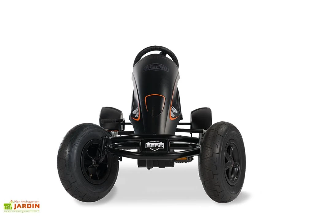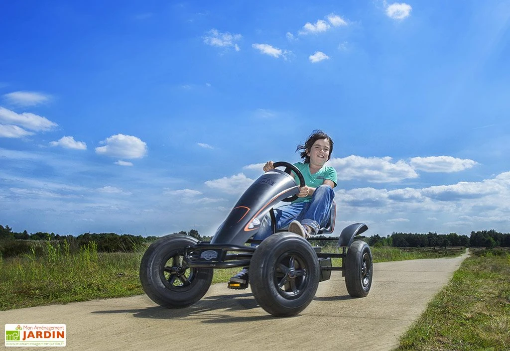 Doté de véritables pneus à air, ce kart offre une conduite souple et agréable, sur le bitume comme sur les graviers. Il fait également preuve d’une grande stabilité et d’une bonne adhérence car doté d’un essieu oscillant conçu pour contrebalancer les irrégularités du terrain. Son système de rétrofreinage permet non seulement de s’arrêter en un clin d’œil, mais également de repartir immédiatement en marche avant comme en marche arrière.