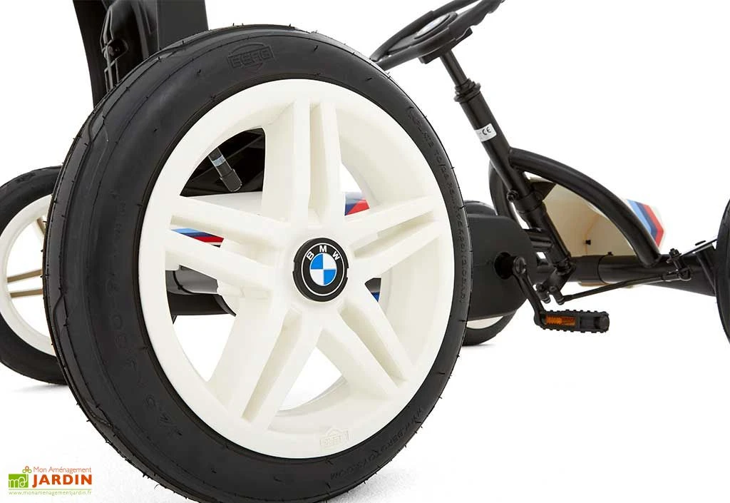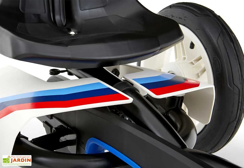 Le kart à pédales BWM Street Racer de chez Berg revêt les couleurs de la célèbre marque allemande. Pensé pour la course, il garantit une très bonne tenue de route grâce à un essieu central oscillant, pour une adhérence parfaite. Il est également doté de pneus à air offrant une conduite plus confortable. Idéal pour les enfants à partir de 3 ans, ce kart est équipé d’un volant et d’un siège réglables, ce qui lui permet de suivre la croissance de votre petit, jusqu’à ses 8 ans environ.