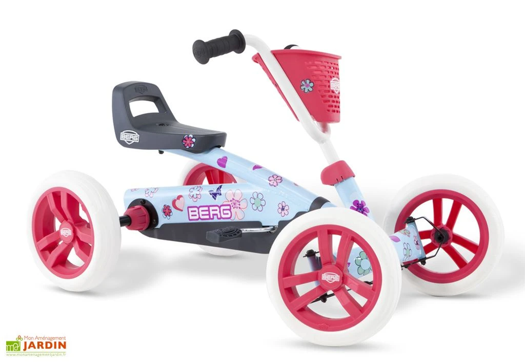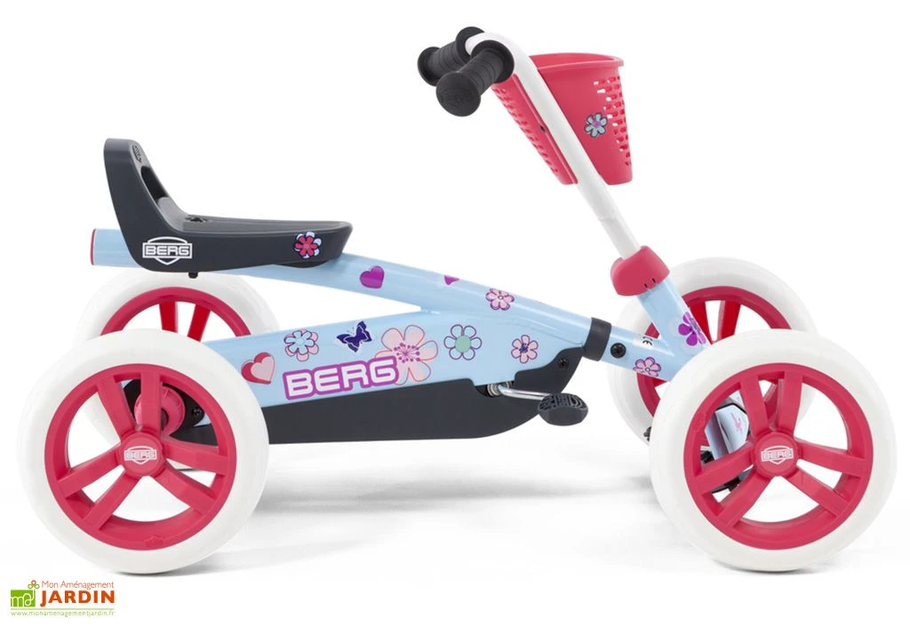 Le kart à pédales Buzzy Bloom a été pensé pour offrir stabilité et confort de conduite. Conçu pour les enfants entre 2 et 5 ans, il intègre un essieu oscillant qui garantit une bonne adhérence et ses quatre roues le rendent bien plus stable qu’un tricycle. Il dispose même d’un siège et d’un volant ajustables qui lui permettent de suivre votre enfant dans sa croissance !