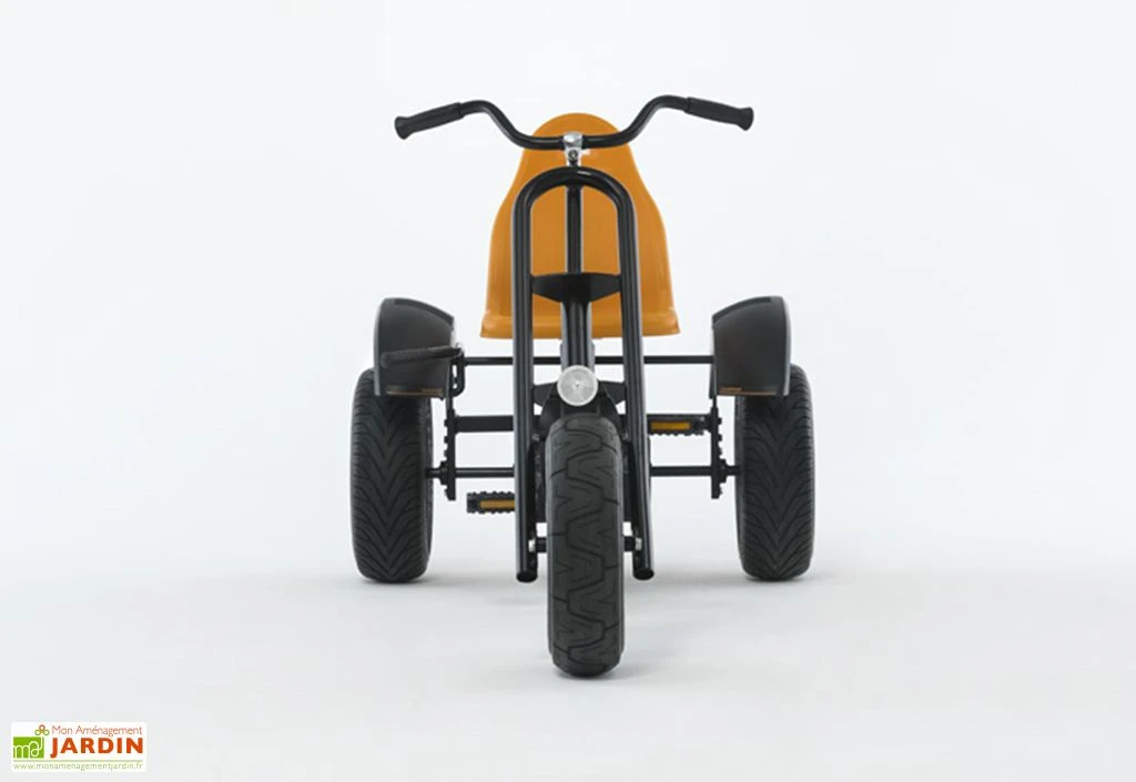 Destiné aux enfants âgés d’au moins 5 ans, ce kart possède un siège et un guidon réglables. Il accompagnera donc votre enfant pendant de longues années. Il offre une conduite agréable et une stabilité parfaite, notamment grâce à ses larges pneus à air et à son essieu oscillant. Ce dernier garantit une excellente adhérence et permet de compenser les irrégularités du terrain. Totalement sûr et très confortable, ce kart à trois roues transformera votre enfant en vrai petit motard !