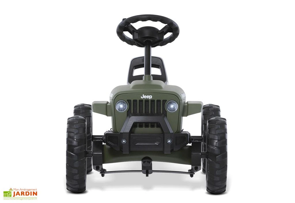 Une véritable Jeep miniature : voilà ce que propose Berg avec son kart pour enfant Buzzy Sahara ! Pensé pour les 2 à 5 ans, ce kart à pédales reprend le look de la Jeep originale. Design, couleur, suspensions, pneus tout-terrain… tout y est ! Le kart intègre de plus un essieu oscillant qui lui garantira une bonne stabilité et une parfaite adhérence pour que votre enfant puisse conduire facilement, en toute sécurité.