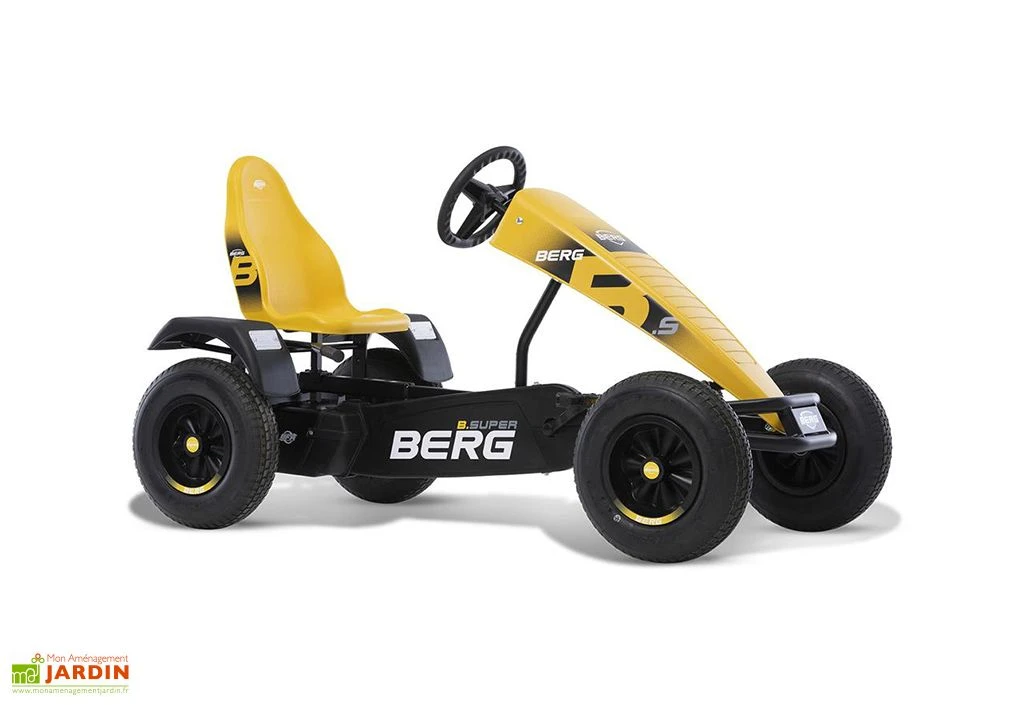 Disponible en bleu, en rouge ou en jaune, au choix, le kart à pédales Berg XL B.Super conviendra pour les jeunes enfants, dès 5 ans, mais il pourra également être utilisé par les plus vieux grâce à son grand cadre et à son siège réglable. L’utilisateur ne devra toutefois pas dépasser les 100 kg. Ses larges pneus offriront à votre enfant une conduite plus confortable ainsi qu’une bonne adhérence, sur le bitume comme sur l’herbe ou les graviers.