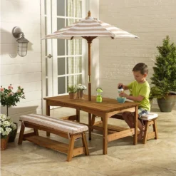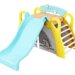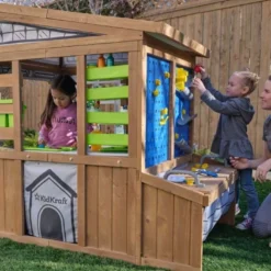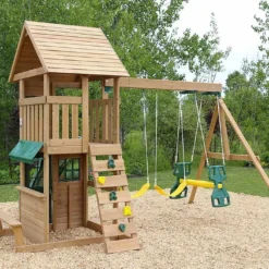 L’aire de jeux en bois Hideway Haven de chez Kidkraft est conçue pour les jeunes enfants, dès 3 ans. Elle est composée de nombreux jeux adaptés aux plus petits, comme les balançoires, le toboggan ou le hamac situé sous la cabane, tandis que les plus grands pourront profiter de la balançoire debout dont est également équipé le portique. Bien que montée sur pilotis, la cabane pour enfant se montrera facile d’accès grâce à une large échelle courbée.