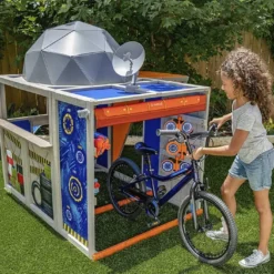 Cette aire de jeux de jardin est fabriquée en bois teinté à l’aide d’une solution à base d’eau qui ne représente aucun danger pour la santé des enfants. Elle se montrera solide et résistera à toutes les aventures de vos enfants, et ce pendant de nombreuses années ! L’ensemble de l’aire mesure 539,9 cm de large sur 248,3 cm de profondeur, ce qui signifie que ces jeux de jardin occuperont une surface de 13,3 m² dans votre extérieur.